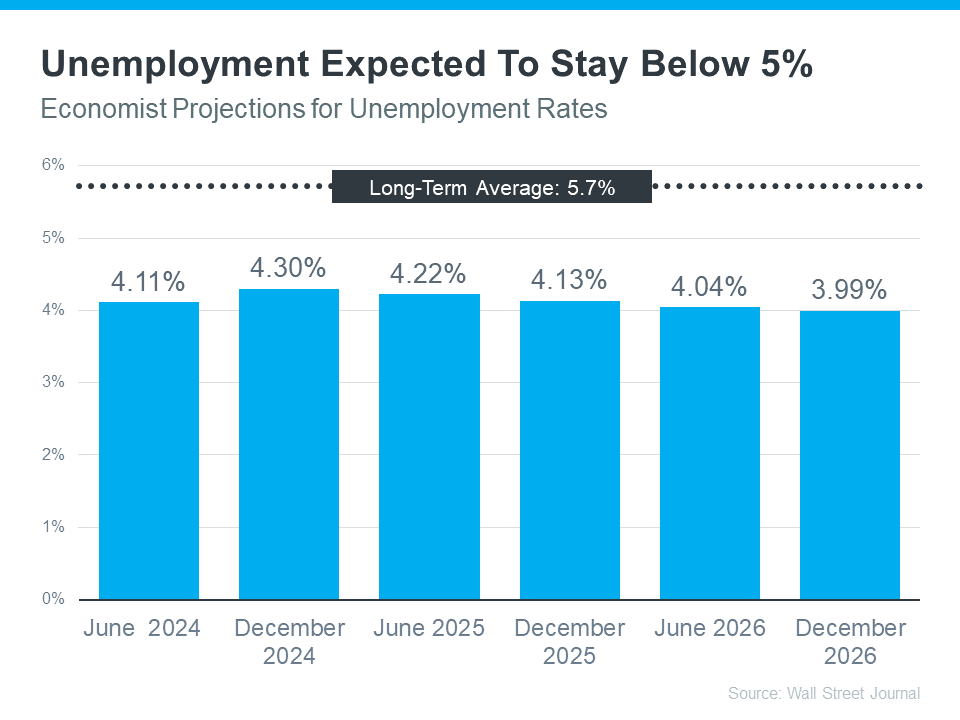 Looking ahead, projections show the unemployment rate will likely stay below the 75-year average. That means you shouldn't expect a wave of foreclosures that would impact the housing market in a big way.